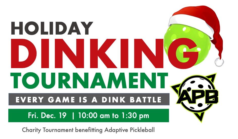 You’ll play 11 games with a different partner every game. Each game will be timed at 8-mins. It’s match play scoring where each player on the winning team earns a point. If the game is tied after 8-mins, then all dinkers will receive a half-point. The top four dinkers in their division will compete in a “Dink-Off” and the last dinker standing will be crowned the HOLIDAY DINKING CHAMPION!!!